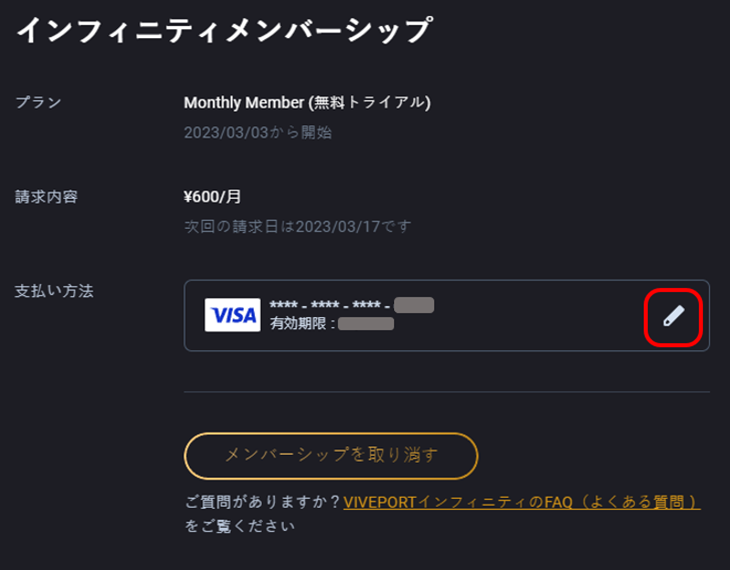 3. 現在の支払い方法の横にある編集ボタンをクリックします。
