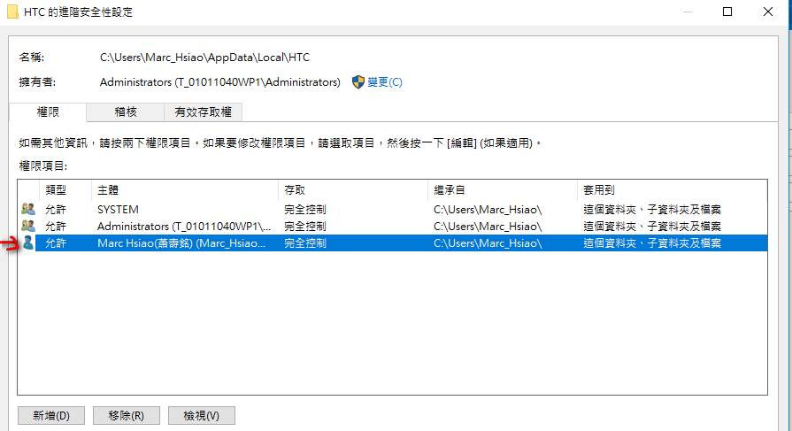5. 雙擊當前的使用者進入設定,將權限修改為「完全控制」: